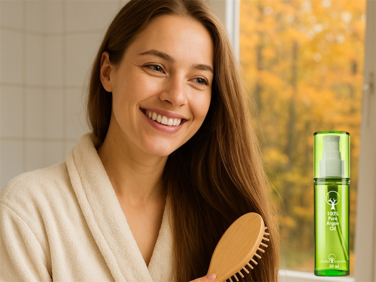 Pipokauden jälkeen hiukset kaipaavat yleensä erityistä hoitoa. Hiusten latvat saattavat olla kuivat ja katkeilevat. Arganöljy ravitsee hiuksia ilman, että ne tuntuvat raskailta tai rasvaisilta.